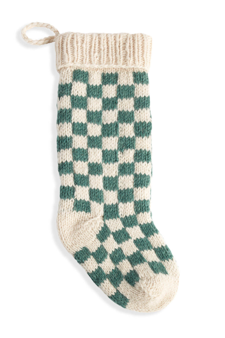 Give your mantel a vintage vibe with these natural fiber stockings. Knitted from a chunky material with a classic top cuff and trendy checkerboard pattern, they will conjure a sense of nostalgia and bring a sleigh’s worth of holiday cheer to your home.