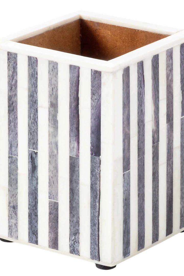 A mosaic of authentic bone tiles gives this open topped box a touch of organic elegance. Perfect for holding pens, toothbrushes or cosmetic brushes and rich in graphic natural tones, it makes a beautiful addition to a vanity, desk, or a console. Co-ordinates with other bone inlay bathroom essentials to create calm uniformity and help keep clutter at bay.