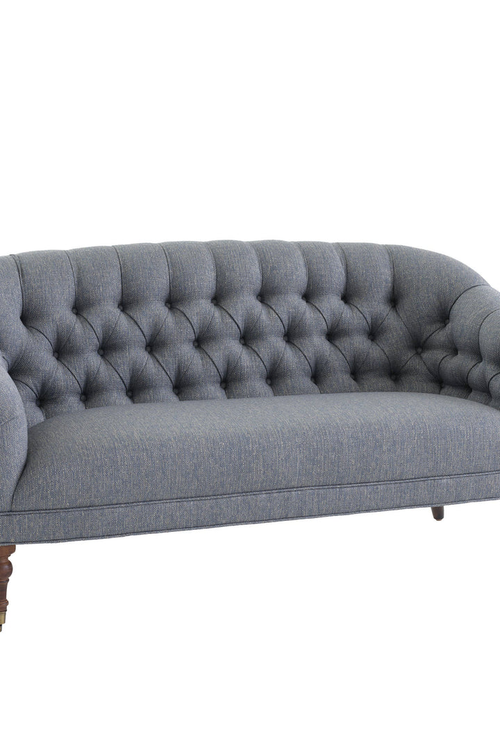 Graciously curved and timeless in sensibility, our Becket Loveseat is inspired by the classic Chesterfield sofa. Here in a smaller footprint with button tufting, lower rolled arms, graceful turned legs and nailhead trim. Custom upholstered in your choice of designer fabrics. Exclusively from Annie Selke.