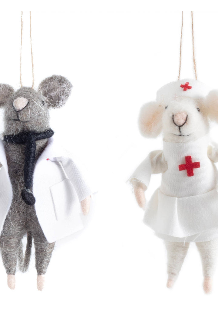 Not a creature was stirring but this pair of hand-felted healthcare mice, ready to spring into action and bring enchantment to your home – or to any gift recipient. With their detailed faces, adorable medical details, and tailor-made outfits, they're sure to cure your craving for cuteness! Each comes with a string attached, ready for hanging on a tree, a wine bottle, or a wrapped present.