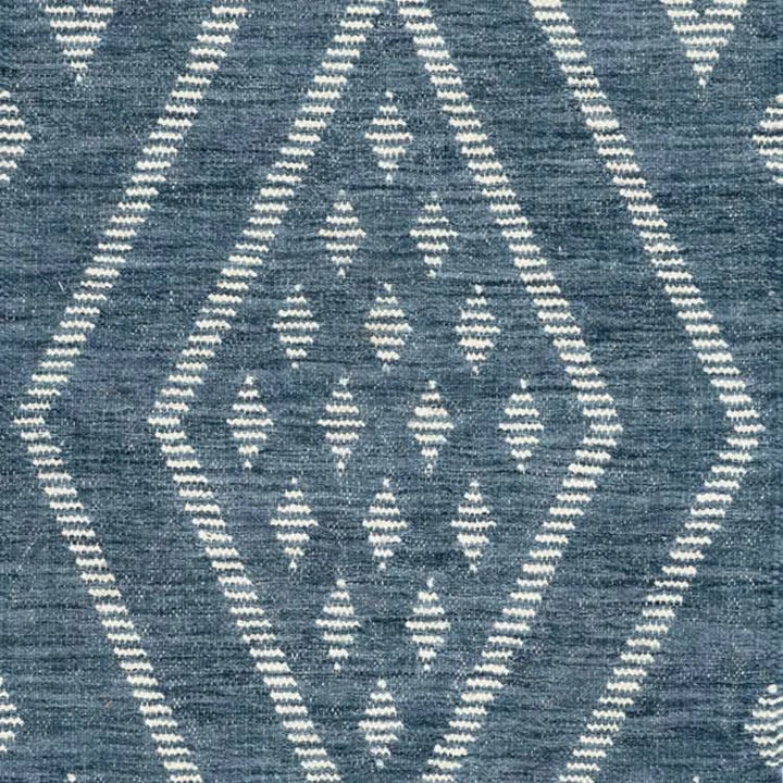 Handwoven in India from pure new wool with a uniquely developed float-weave structure. Featuring a contemporary composition of concentric diamonds-within-diamonds in indigo and natural, this rug represents a seamless melding of modern and traditional craftsmanship descending from techniques that are centuries old.