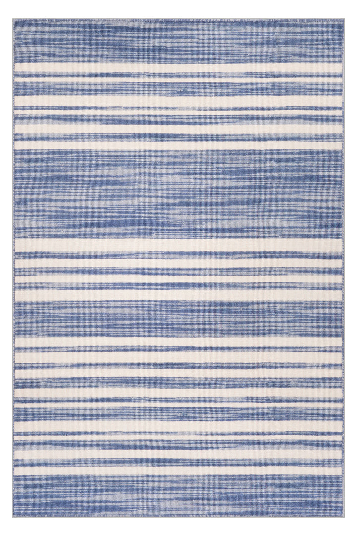 Softly striped and effortlessly serene, the Ilæ Coastal Striped Washable Rug brings its breezy, shoreline‑inspired pattern to life with a gentle, watercolor ease. Blue and ivory bands move across its surface in a way that feels both relaxed and refreshingly crisp, adding subtle character without overwhelming your space. Crafted from durable synthetics, its flat pile offers a smooth, refined feel underfoot, resists everyday wear, and slips easily beneath the sweep of a door for seamless placement. Fully washable, Ilæ restores its crisp, coastal freshness with ease, offering enduring elegance through the ebb and flow of daily life.