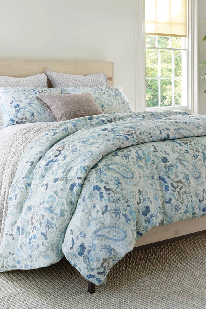 Ines Blue is easy to love; the rhythmic and lyrical paisleys, florals and foliage dance together in washes of blue, indigo and charcoal on a rustic laundered linen ground. Washed and tumbled for sublime softness and drape. Wake up to the colors of an ocean breeze and slip into the new day feeling refreshed and relaxed.