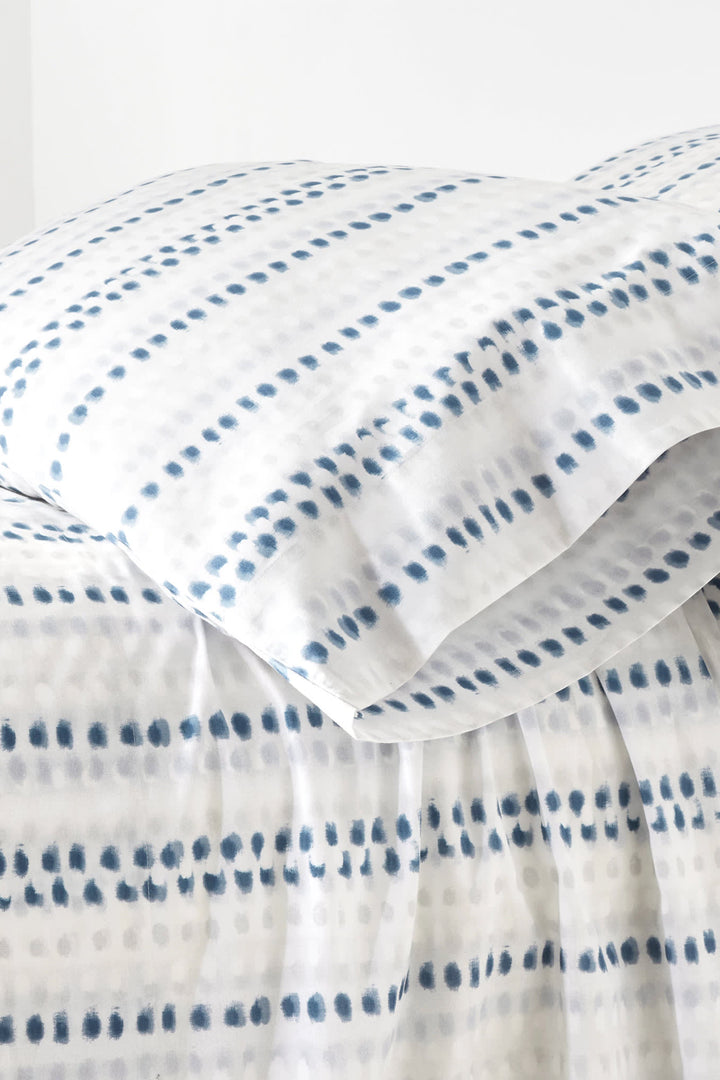 A minimalist, modern design in versatile ink blue on a crisp white cotton pillowcase: what could be easier? Multiple pairing possibilities, from solids to florals, stripes, abstract patterns, and everything in between. Sign on the dotted line for a stylishly stress-free slumber. <br> <br> � 100% cotton. <br> � 4"� hem on opening end. <br> � �"� finished seams.