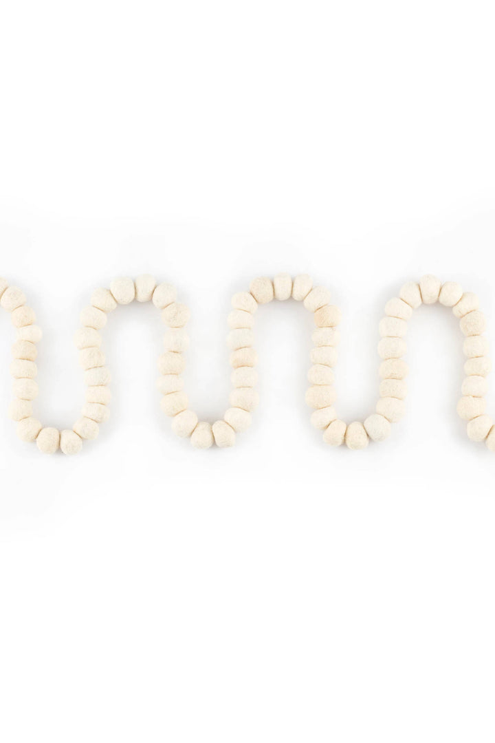 Bundle your trees, wreaths, and mantles with graphic punctuations of alternating black and ivory felt baubles. For a lean and green hygge holiday, this hand-felted wool garland feels good on every level. Strung on soft cotton cord with hanging loops on each end for easy attaching. Lightweight and non-toxic, it suspends easily and is family-friendly.
