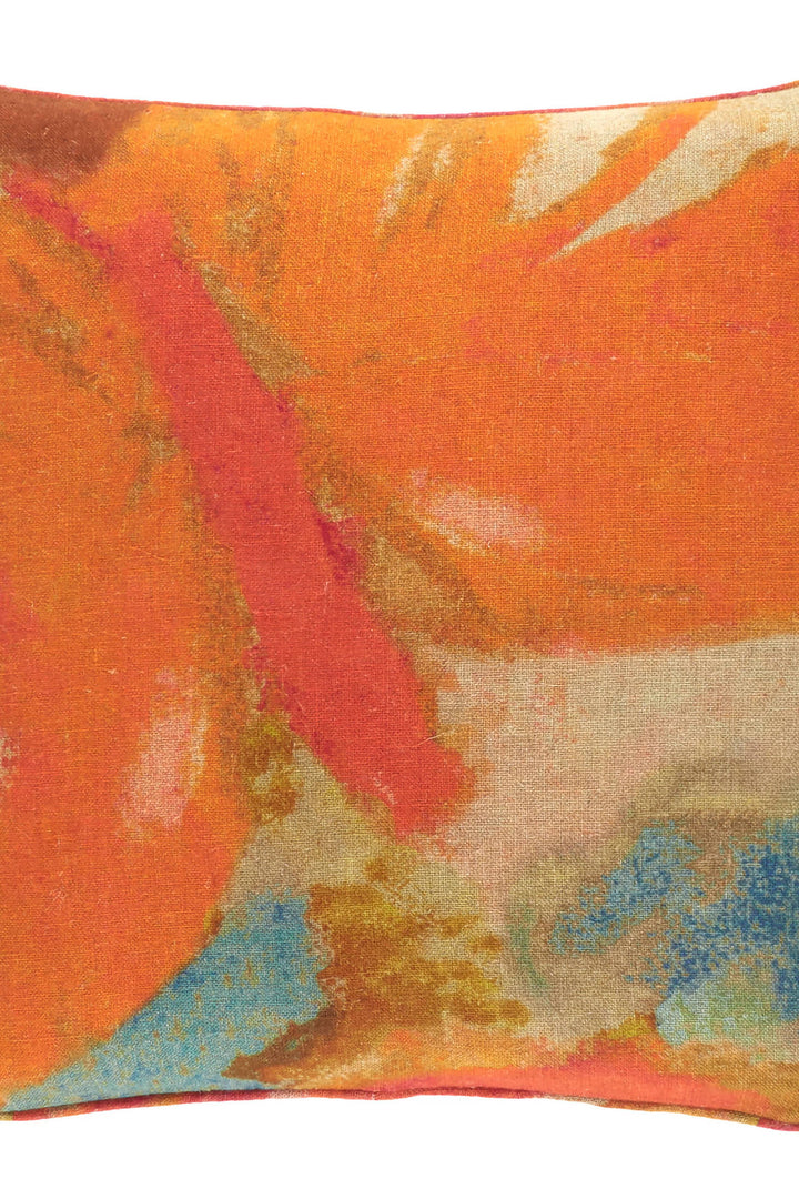 Colorful and abstract, this gorgeous print was inspired by a paper vintage dress our designers discovered at the famous Brimfield Antique Market in Massachusetts. Like a watercolor translated onto a pillow, it’s digitally printed (on both sides!) on our bestselling natural linen.