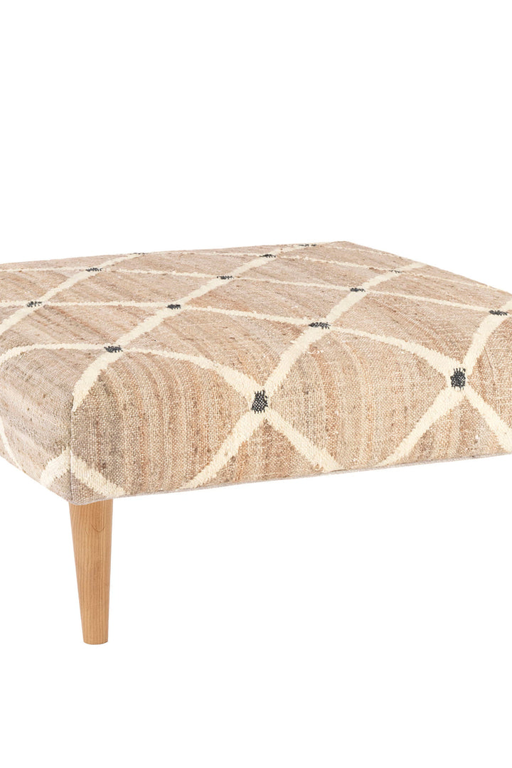 We’ve taken one of our most popular jute rug - Kali Handwoven Jute Rug - and translated it into this chic ottoman. Woven in hardworking jute and a touch of cotton for softness, the simple latticework pattern, punctuated by charcoal dots at the crisscross, makes a convenient and eye-catching option that elevates any room. The cushioned ottoman is held aloft by a choice of shapely turned-wood legs in a variety of finishes. An ideal placement for front of sofa or end of bed, doing double duty as occasional seating and staging area for a tray. This supersmart addition to entryway, living room or bedroom is a versatile investment piece, available in two sizes.