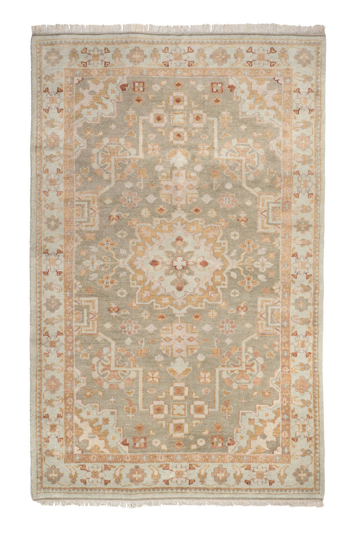 Part of our Masterpiece Collection that draws from the rich heritage of traditional, Turkish Oushak rugs. Woven and hand-knotted by master weavers in India, every detail – from the intricate motifs down to the finest yarn – speaks to the unparalleled quality and artisan craftsmanship of these vintage-inspired rugs. The Kendra Sky Hand Knotted Wool Rug, a refined blend of olive, taupe, and sky blue, effortlessly captures the eye with its timeless, classic design. The soft yet captivating colors bring a touch of sophistication, making this rug a versatile piece that adds style and warmth wherever it goes.