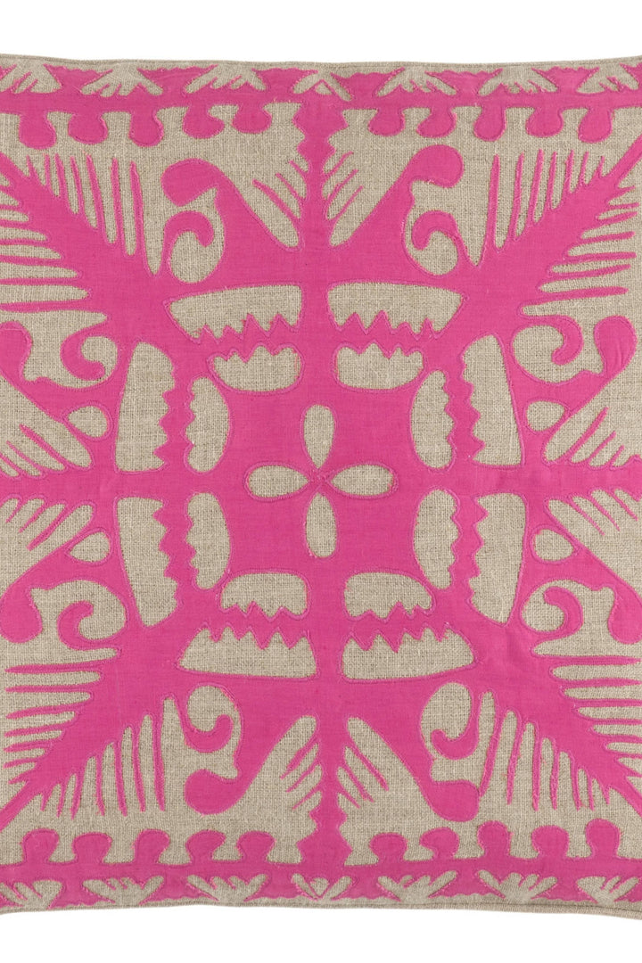 Part of our design collaboration with Kit Kemp. This one-of-a-kind decorative pillow boasts a handstitched cutwork design on 100% natural linen. Solid on the reverse, it makes an exquisite embellishment on any chair, bed, or sofa.