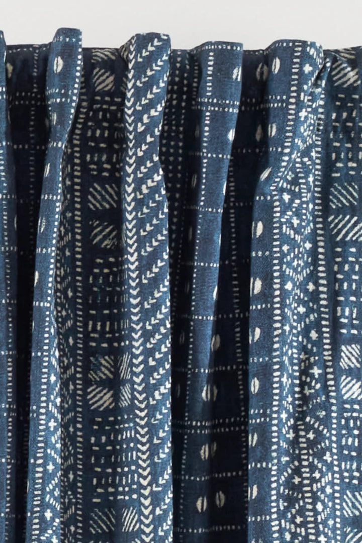 Made from a linen-cotton fabric with a soft, subtle texture, this heavily lined, light-filtering curtain panel features an eclectic, block print. Inspired by an antique textile our designers discovered at the famed Brimfield Antique Market in Massachusetts, it’s artful and eye-catching in an authentic indigo blue.