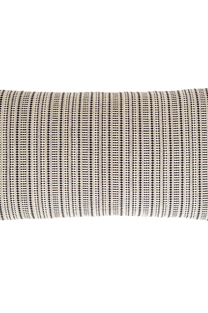 An allover tribal-inspired jacquard stripe repeats in black and white for a striking graphic statement for the modern interior. Fully reversible with the same design on both sides and black tassels on each corner for a whimsical exotic touch.