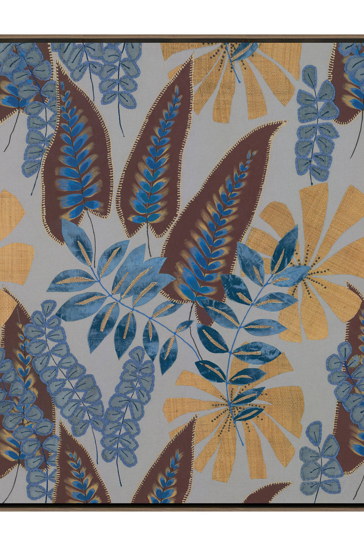 - Printed on canvas and embellished with gold leaf and blue paint, with walnut floater frame. Includes d-ring hanging hardware.