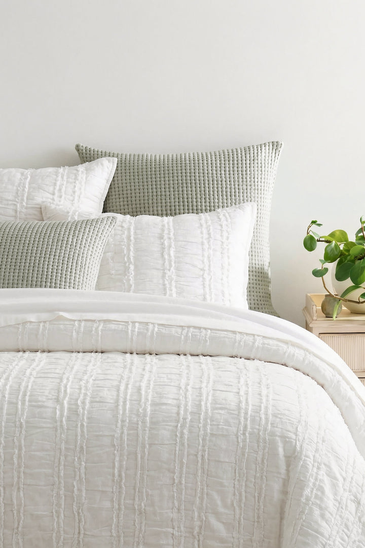 For the perfect spring‑into‑summer layer, look no further than the Lettie Voile Quilt. Crafted entirely from breathable cotton, this lightweight quilt pairs airy cotton voile on both sides with a thin, all‑cotton batting for just the right touch of softness. Subtle textural channeling adds gentle dimension while keeping the look clean, fresh, and effortlessly relaxed. Light, breathable, and beautifully simple, Lettie brings a refined ease to your bed—an inviting layer that feels as crisp and refreshing as the season itself.