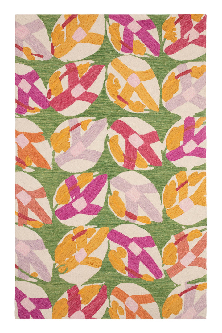 Kit Kemp's signature aesthetic and distinctive sense of color shines through in each iteration of this kinetic, retro inspired design. Evoking the shifting patterns and reflective surface of a lily covered water feature, each rug tells the story of refracted light through the seasons. Artfully rendered in micro hooked wool, for distinctive definition of form and color, as well as long lasting beauty and durability. One of the modern creations from the design collaboration between Annie and Kit Kemp, co-owner and Creative Director for Firmdale Hotels, united by their passion for colorful and carefree design, redefining contemporary Arts and Crafts for everyday life.