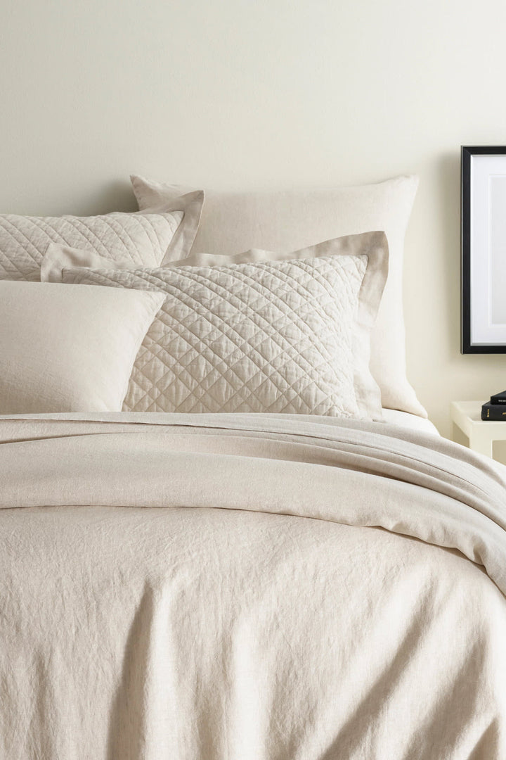Speckled with intermingled black and white threads, this salt-and-pepper marled duvet cover is made of softly stonewashed, exquisitely textured, cool, and drapey linen. Sleep better and deeper as you tumble into rumpled bliss, our laundered lush linen will keep you comfortable all night long. With a masculine marled weave and a sophisticated texture, this duvet cover has a reliably understated urban elegance.