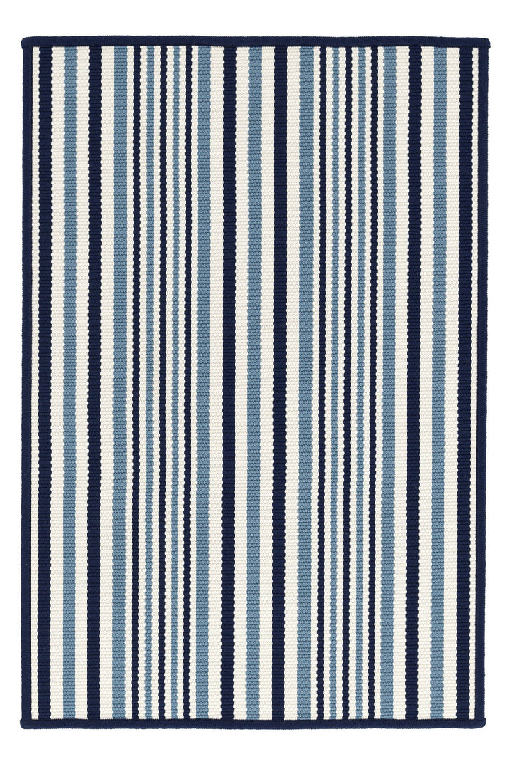 Lyndon Stripe Woven Indoor/Outdoor Custom Rug | Denim