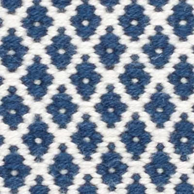 A classic lattice diamond in versatile blue and ivory color combo offers subtle geometric interest on a durable and washable floor covering. Made of eco-friendly 100% PET, a soft-handed fiber from recycled plastic bottles.