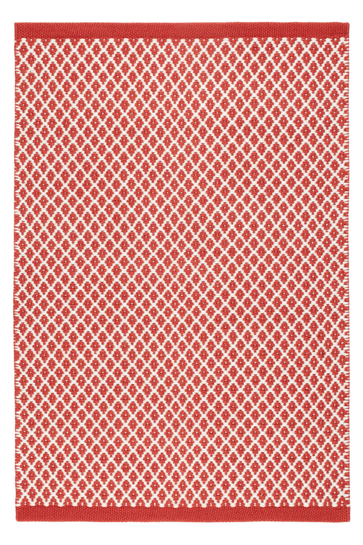 A classic lattice diamond in versatile blue and ivory color combo offers subtle geometric interest on a durable and washable floor covering. Made of eco-friendly 100% PET, a soft-handed fiber from recycled plastic bottles.