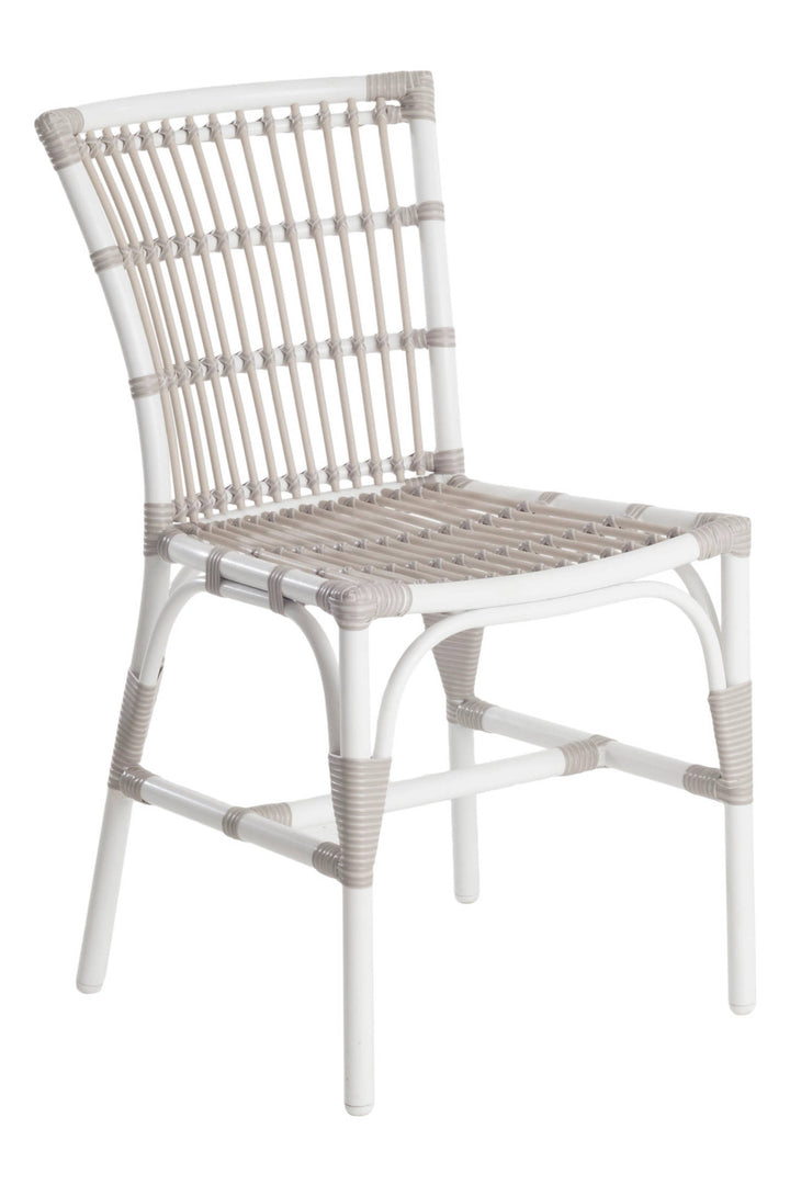Captivating with its timeless and perfectly clean lines, this chair fits neatly on the balcony and makes eating al fresco a delight. Its simple design is stackable and easily combines with most table styles. The beige/white color combination blends effortlessly with most woods. Constructed with aluminum frames and weather-resistant Artfiber weaving, it is maintenance free for outdoor and garden use. Choose your own cushions for an individual look.