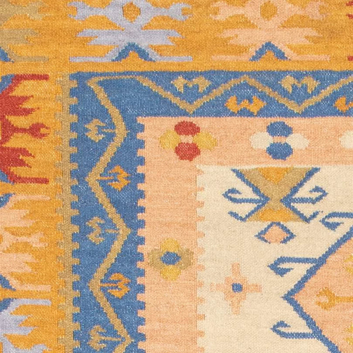 Handwoven on a loom by artisans using age-old techniques, this authentic kilim design brings a spicy-hued palette to your space. Its durable wool construction makes it ideal for high-traffic areas such as dining rooms, entryways, and living rooms.