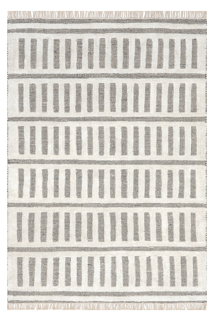 Add dimension to a space in an easy, approachable way with the Myrick Hand Tufted Cotton Rug and Wool Rug. With its high-low pile, textural details, and tasseled ends, this rug delivers. Bound to ground any room in beauty, this seemingly subtle rug is anything but.