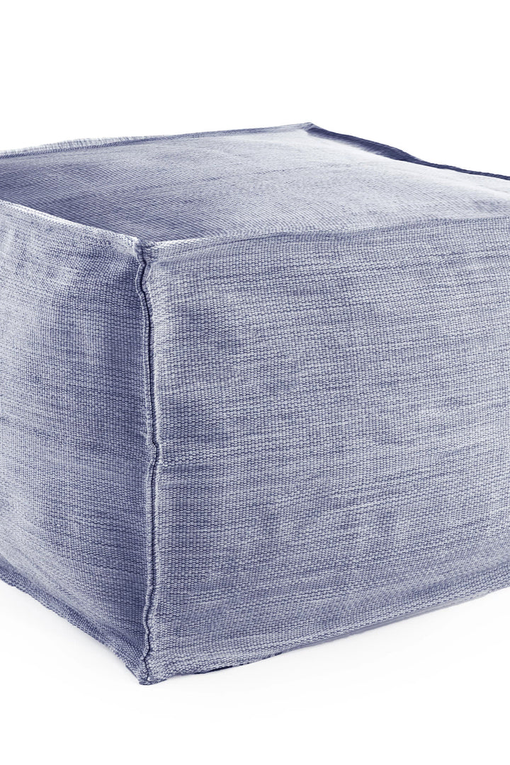Mix up the playroom, patio, living room, or any space with this practical and playful indoor/outdoor pouf, made of durable, washable polypropylene and featuring a fun mingled denim and ivory weave.