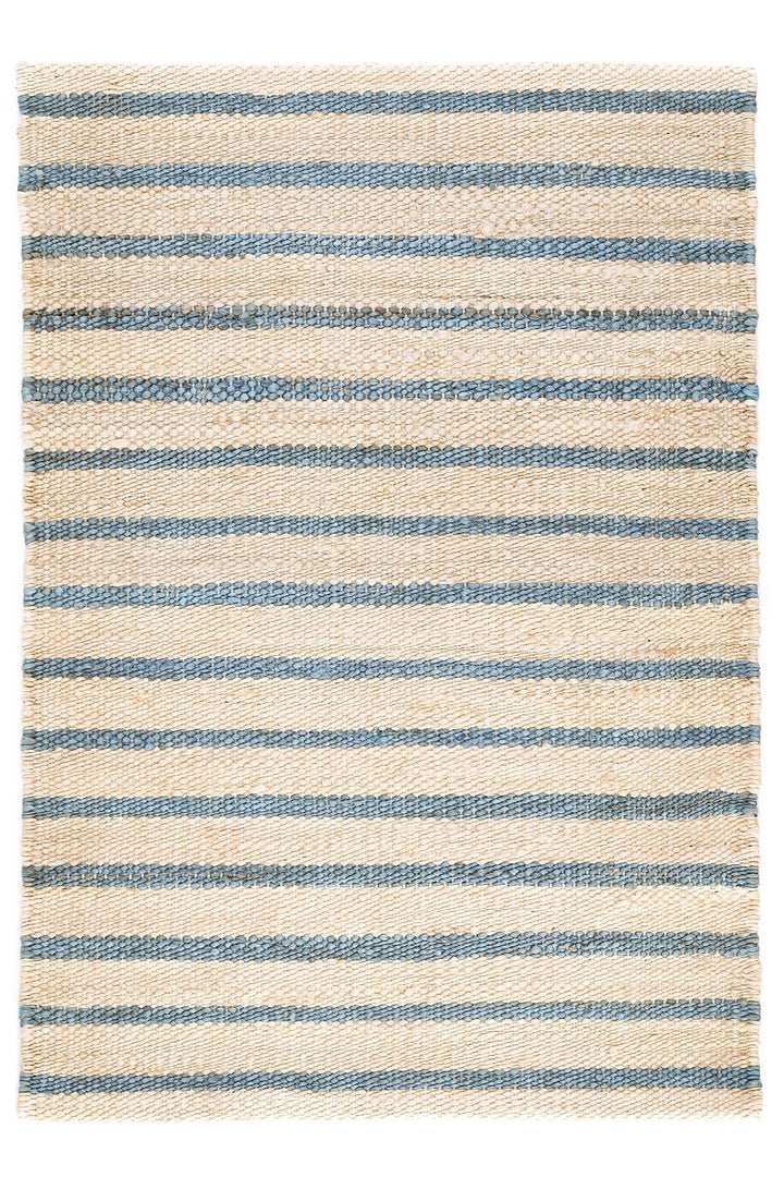 Blending a classic, Swedish Blue stripe with a Natural ground, this heftier flatwoven rug becomes a versatile, room-anchoring staple. Hand made from hardworking jute to create a harmonious feeling of casual comfort, natural texture and effortless style to any room. Sustainable, biodegradable and renewable, jute adds orglamic character and rustic chic to any interior.