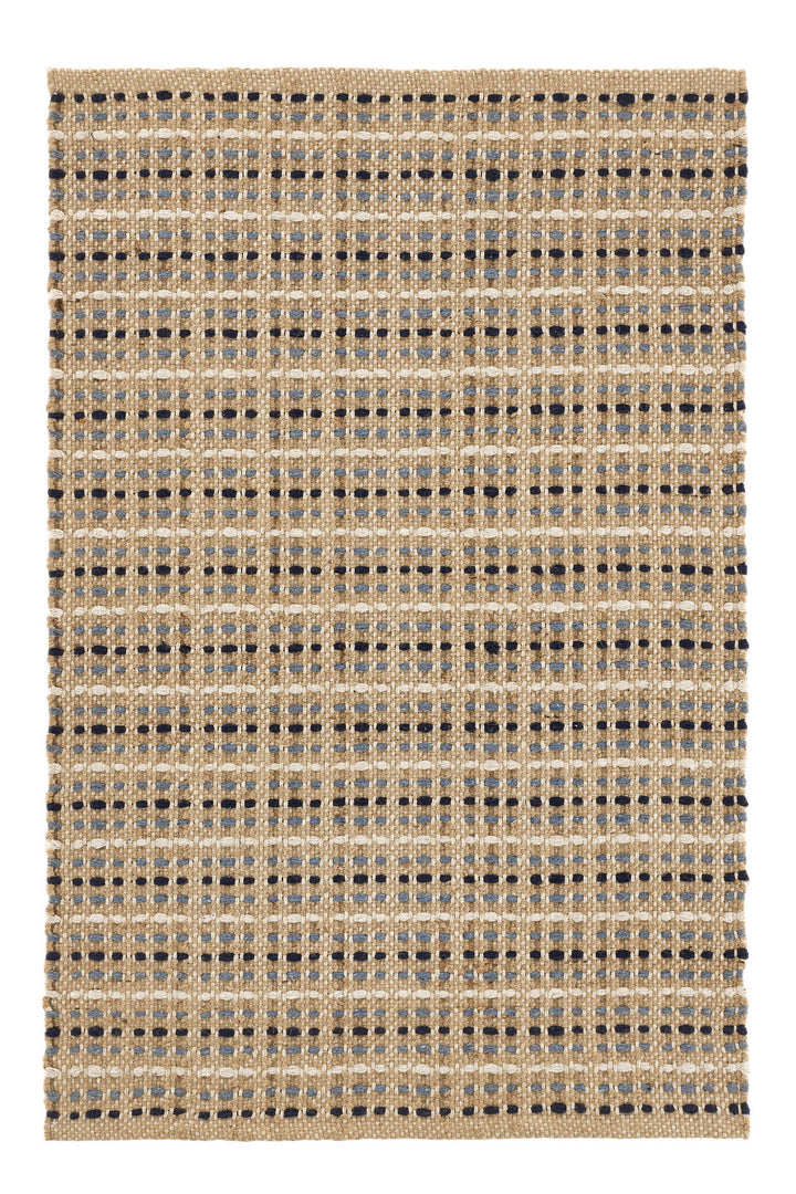 Add depth and dimension to the floor with nubby, slubby, naturally colored jute, accentuated by dotted stripes of White, Denim and Indigo. Beautiful in its integrity and rugged enough for any high traffic area, this eco-friendly, sustainable, natural jute rug is tightly woven in a durable construction for sophisticated, earthen charm.