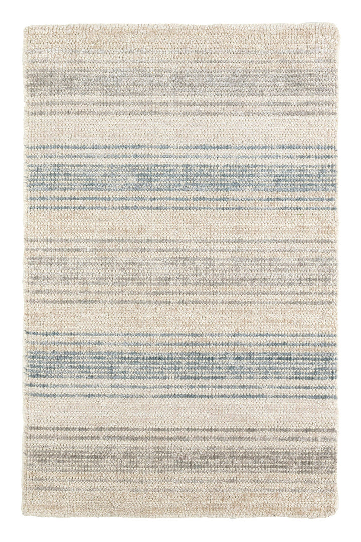 Hazy stripes in blue and brown float like moonbeams on a winter horizon, the natural ground deep with subtle sheen and luster, delicate and profound.
