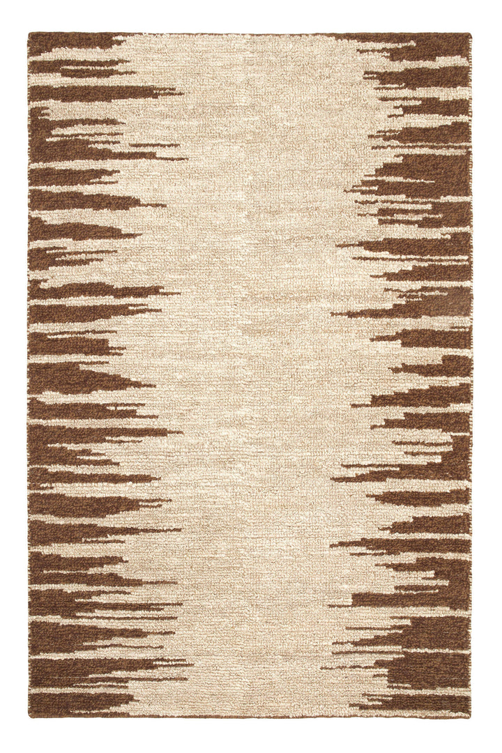 Enjoy the natural beauty of sustainable jute. The burly yarn, densely woven as stubby twisted loops, creates a uniquely random central panel contrasting in color and texture with soft wool borders in earthy mineral shades. Part of a collection designed by Marie Flanigan, the Founder and Principal of Marie Flanigan Interiors.