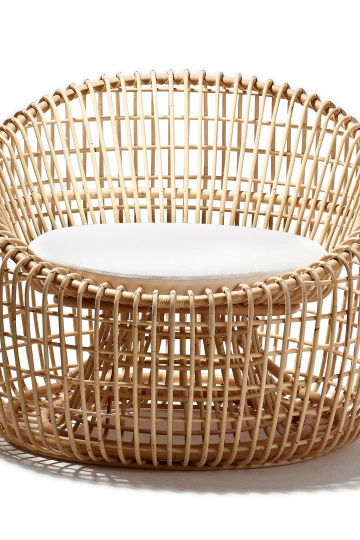 Handwoven of sustainable natural rattan, Cane-line's Nest Chair is another example of their beautifully sculptural, beautifully functional furniture. Light in weight and easy to move around, we love it in a sunroom, or covered porch. Cushion included.