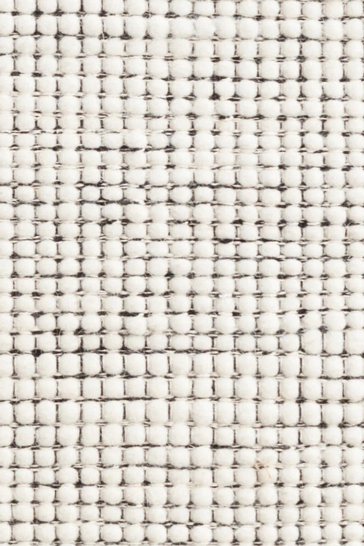 Mosaic cubes of white wool roving are structured into modern grids with a black twisted cotton overlay for magnificent movement and understated textural accent.