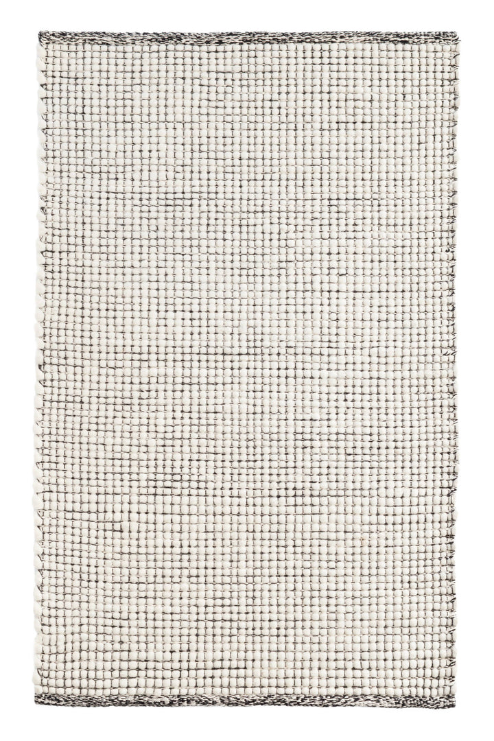 Mosaic cubes of white wool roving are structured into modern grids with a black twisted cotton overlay for magnificent movement and understated textural accent.