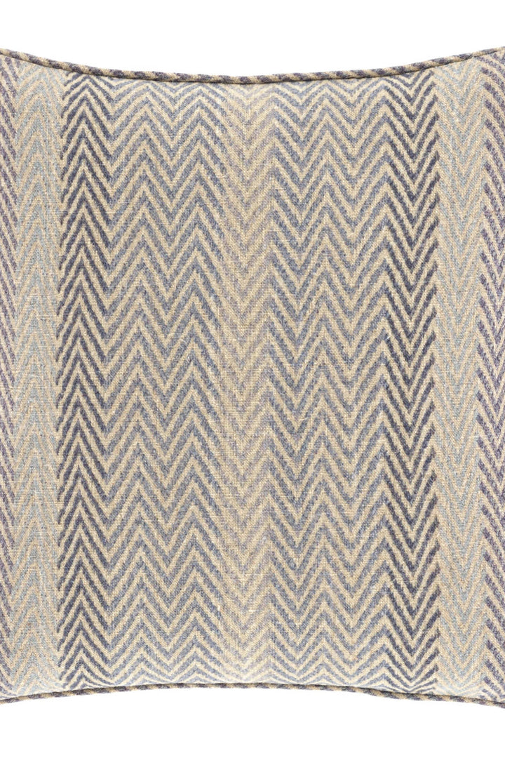 Fresh rik-rak chevron stripes in variegated shades are a dandy, tailored nod to a more staunch herringbone inspiration. The menswear suiting fabric is wittily re-imagined in this linen pillow by Kit Kemp, co-owner and Creative Director for Firmdale Hotels, whose style is defined by a reverence for artisans and a disdain for the rules. Digitally printed to fully capture the ombréed colors and marled effects of the original weaving. One of the modern creations from the design collaboration between Annie and Kit, united by their passion for colorful and carefree design.