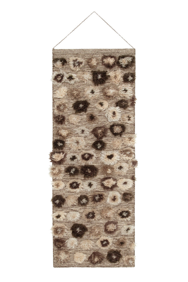 - Materials: 90% Wool/10% Cotton rug with dowel and string for hanging.
