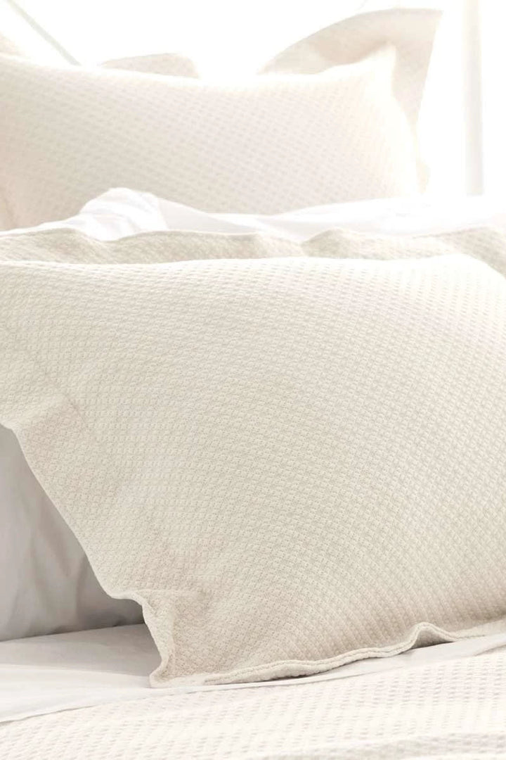 A latticework of tiny tone-on-tone diamonds spills over this matelass� sham, in the softest prewashed cotton. Envelope closure, 2" flange.