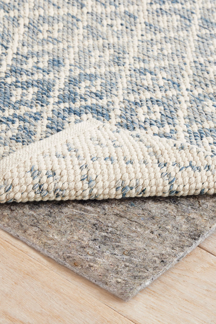 A top-of-the-line rug pad with a thin profile that keeps rugs secure, makes vacuuming easier, and prevents area rugs from slipping and bunching. Works on hardwood floors and carpets and can be cut to fit any rug size. Made of 100% eco-friendly post-industrial synthetic fibers, it will not stain or discolor floors or rugs and adds additional cushioning underfoot.