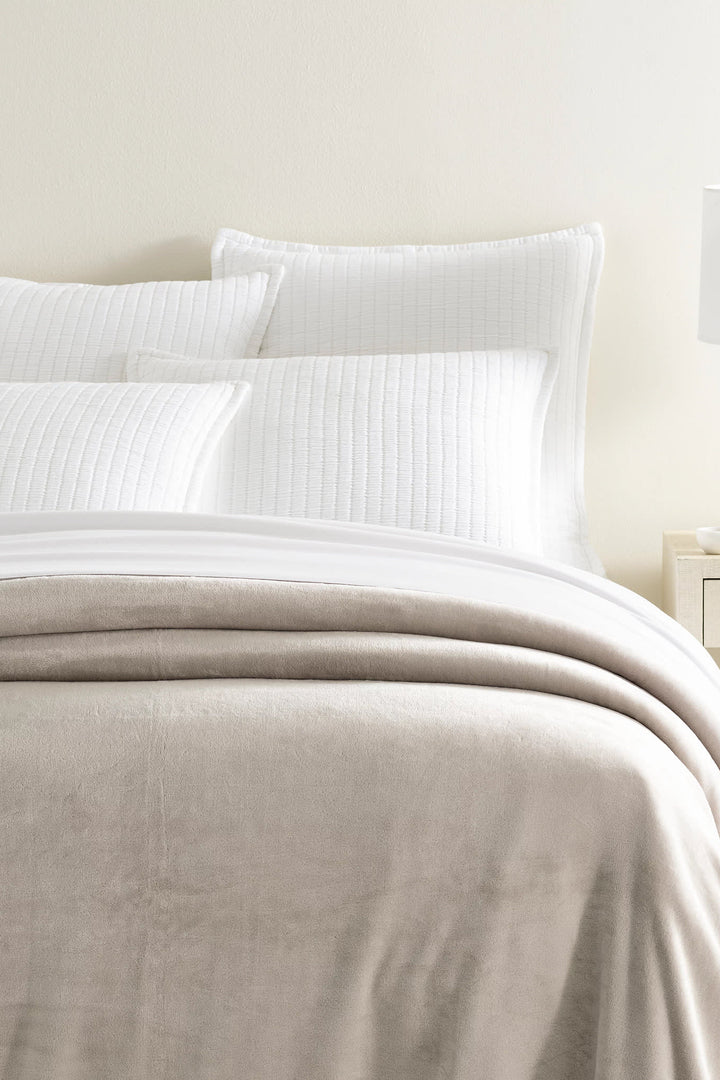 Supersoft Sheepy Fleece gets an update making it even more buttery, lofty and comfy. Napped on both sides for a sensual, snuggly experience, with one side having an even more luxurious deep pile for great insulating properties. Easycare top-of-bed blanket is machine washable and provides a simple extra layer for transitional seasons.