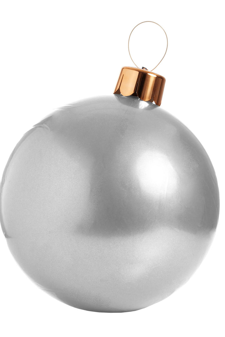 - Inflatable, deflatable, re-useable and storage friendly. Made for both indoor and outdoor use. Holiball Topper, Hanger Plug, and Hardware Kit included. Pump not included. To inflate, use a household electric air pump or air compressor. The inflatable ornament deflates to fit in a 12" x 18" bag for easy storage.