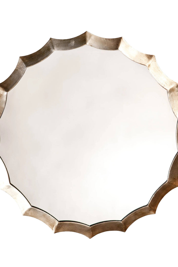 Simple yet substantial, antique silver, scallop edged circular mirror is a delicate and tasteful addition to any style of decor.