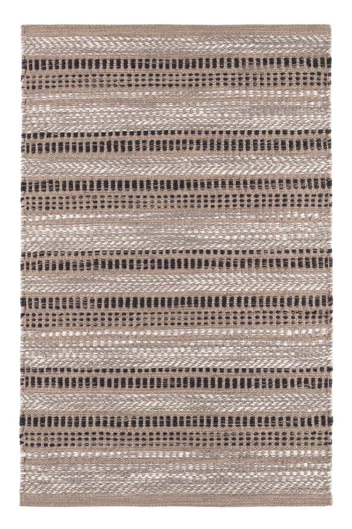 Twill and dobby stripes of exposed floats in sophisticated, marled color gradations create a subtle back and forth of a textural weave. Flatwoven from resilient and washable recycled P.E.T. performance threads, this durable and fade-resistant rug feels as soft as cotton but will stand up to whatever everyday life brings its way.