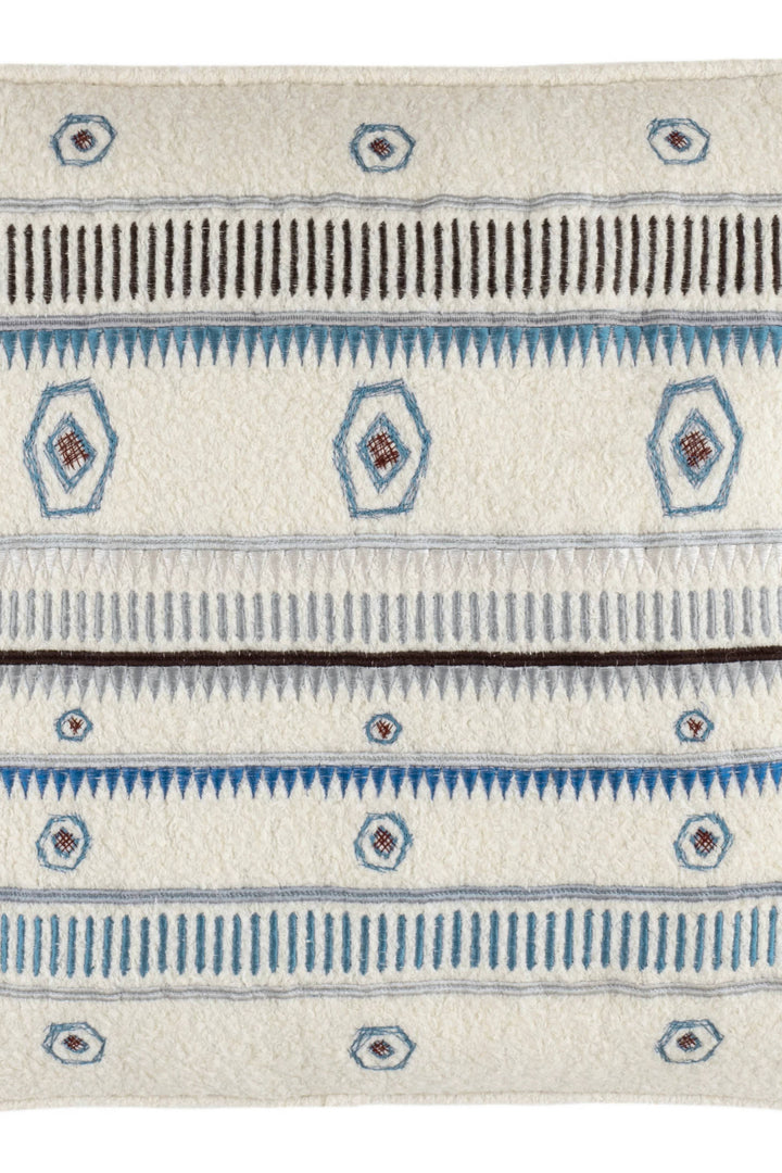 Part of our collaboration with Kit Kemp, this hand-embroidered decorative pillow has a kilim-inspired design featuring traditional Anatolian motifs. Made of soft-boiled wool, it brings tactile warmth and eclectic style to any space.
