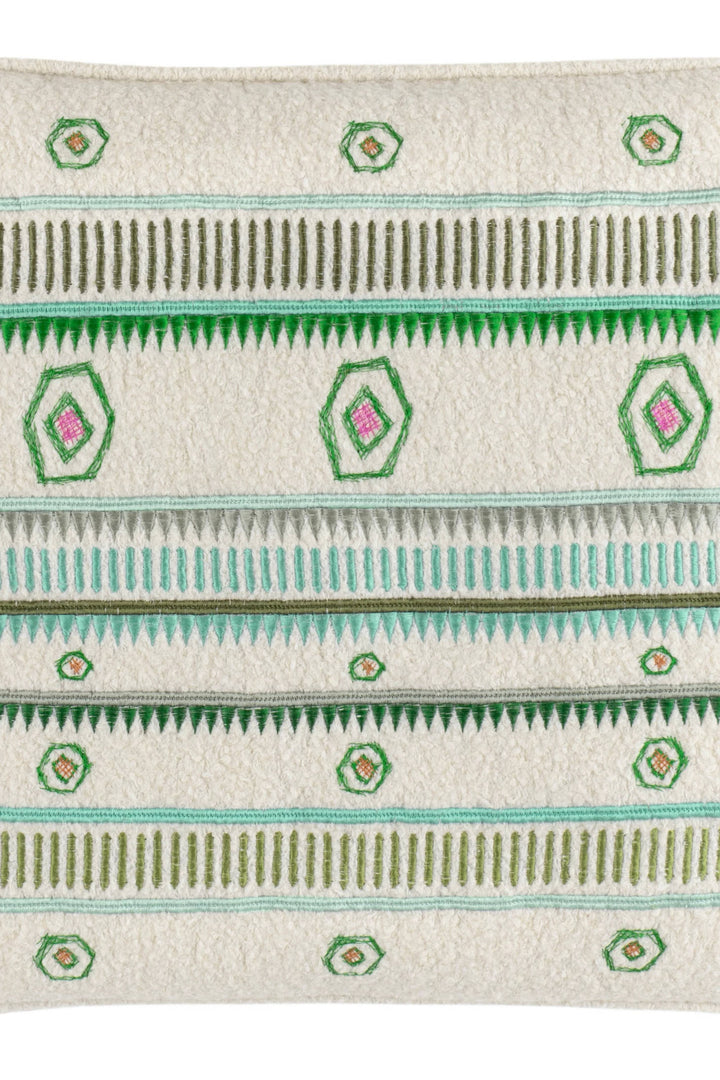 Part of our collaboration with Kit Kemp, this hand-embroidered decorative pillow has a kilim-inspired design featuring traditional Anatolian motifs. Made of soft-boiled wool, it brings tactile warmth and eclectic style to any space.