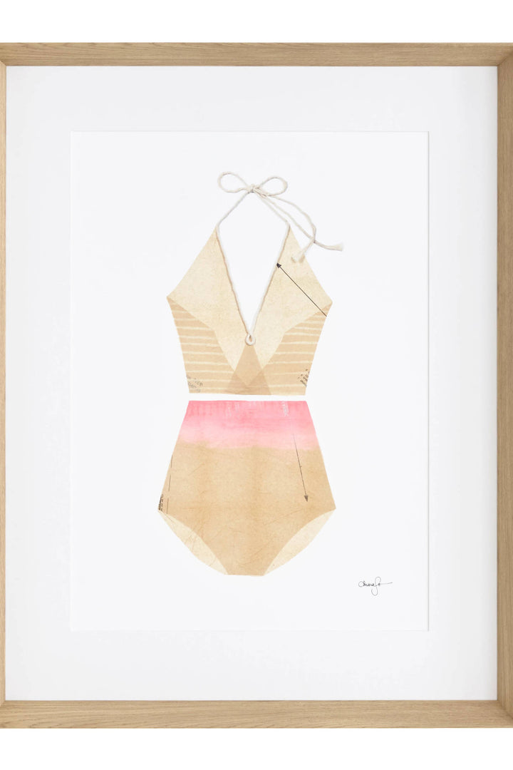 Crafted from paper cutouts and lengths of twine, this charming collage of a retro swimsuit is an ode to the past. Display individually or use all three together for a coastal-themed triptych.