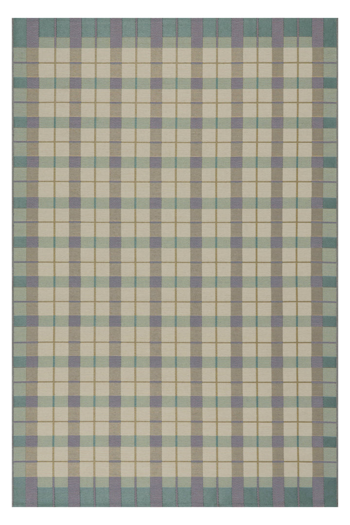 A modern plaid pattern is brought to life on this woven synthetic rug. Its soft and durable flat pile makes it a practical and stylish choice for adding a cozy, contemporary feel to any indoor space.