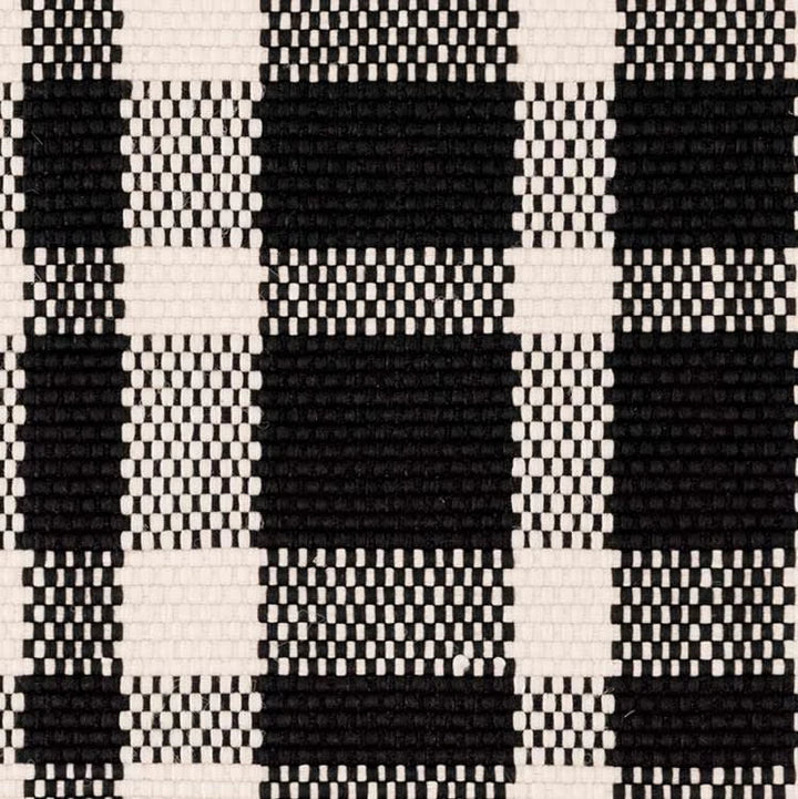 Add a touch of classic style to your high-traffic spaces with this lightweight, washable, and durable indoor/outdoor rug in a timeless yet modern black and ivory plaid.