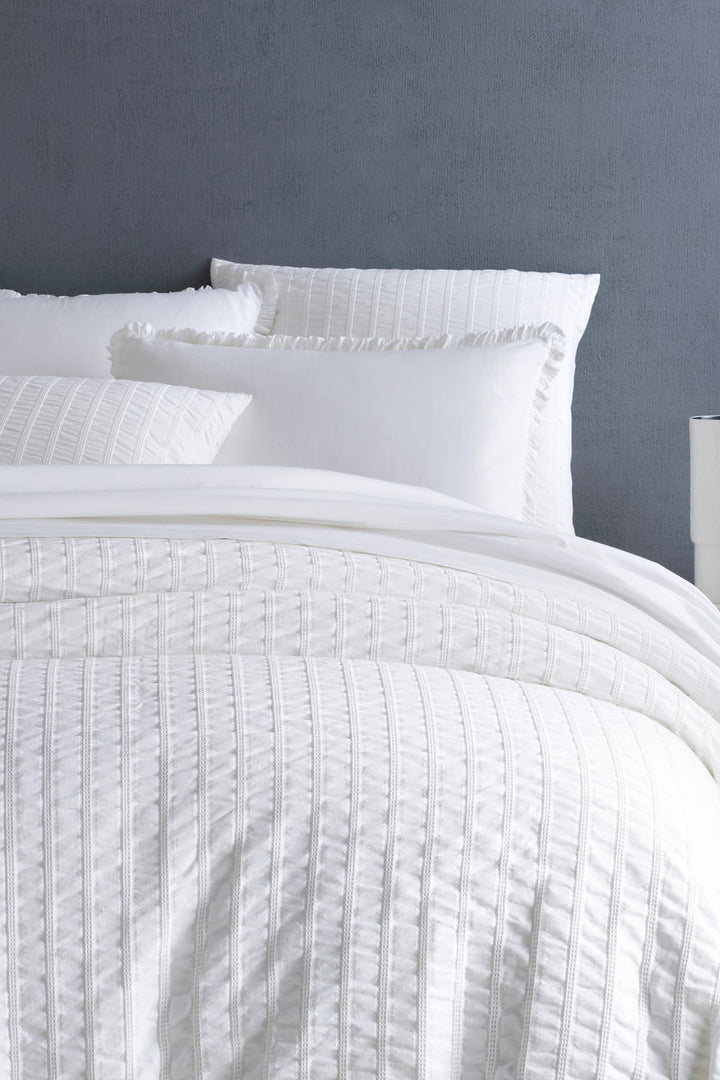 If you're a sucker for subtle texture, you'll love this cotton duvet cover featuring a puckered stripe reminiscent of classic seersucker. Layer this duvet with deep blues and stripes for a traditional look, or add in a fleece blanket and chunky knit throw for the ultimate comfort.<br><br> • 100% cotton.<br> • Knife edge.<br> • Hidden button closure.<br> • Made in Portugal.