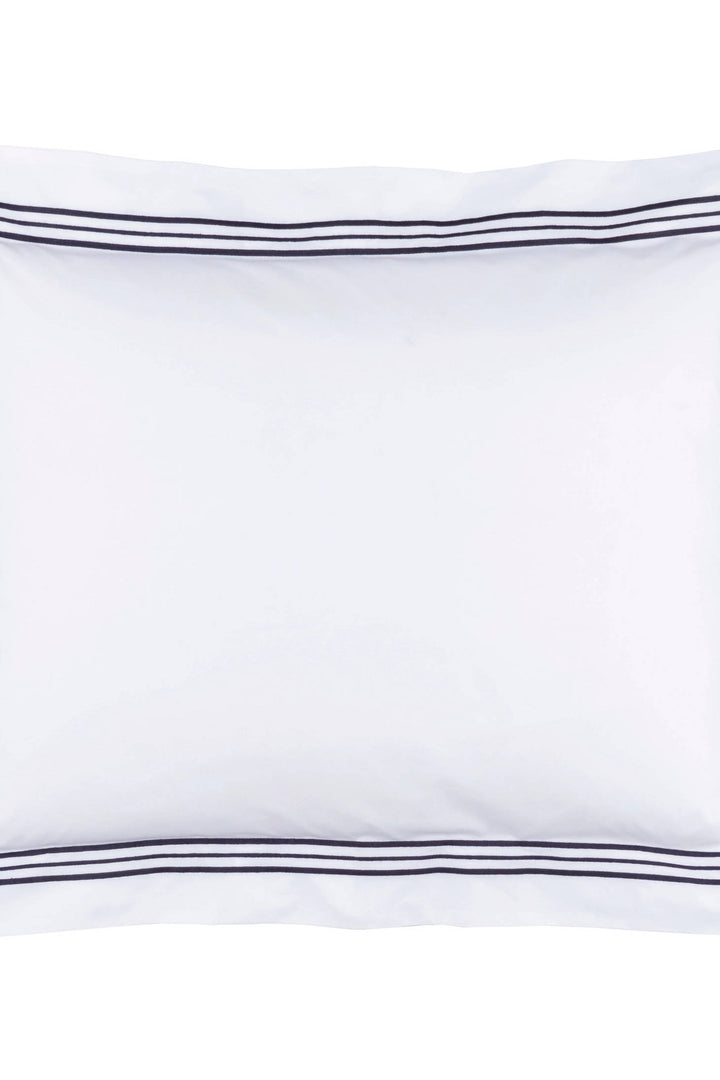 A simple, three-lined pattern adds a touch of refinement to this classic white, 400-thread-count cotton sham.