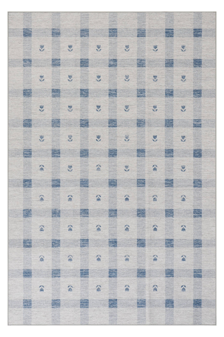 Valen Modern Plaid Machine Washable Rug | Blue