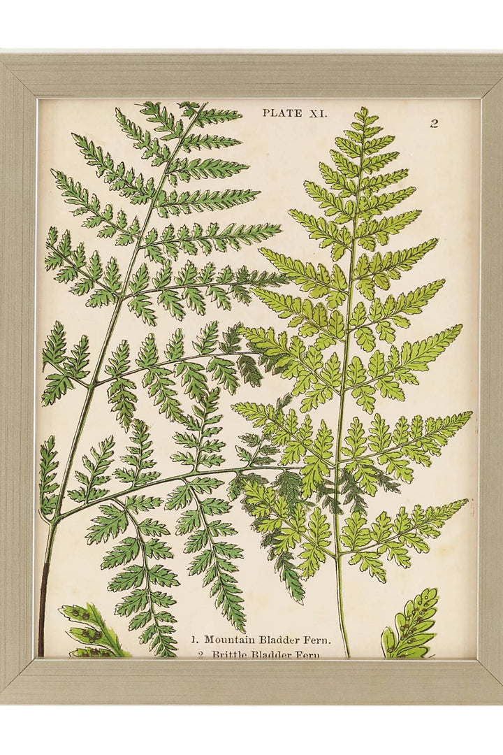 Fragile fern fronds unfurling signals the arrival of spring in the forest, the floor becoming progressively greener as the overstory leafs out. These lovely botanical engravings showcase a small selection of the myriad of different forms this plant presents. Hang all three gallery style or choose from 1. Maidenhair, Killarney, 2. Common Polypody, Breech, Limestone Polypody, or 3. Mountain Bladder, Brittle Bladder.